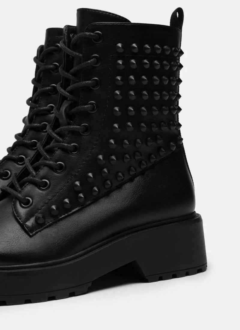 Ghete casual din piele ecologică de calitate accesorizate cu ținte și imblănite pe interior
